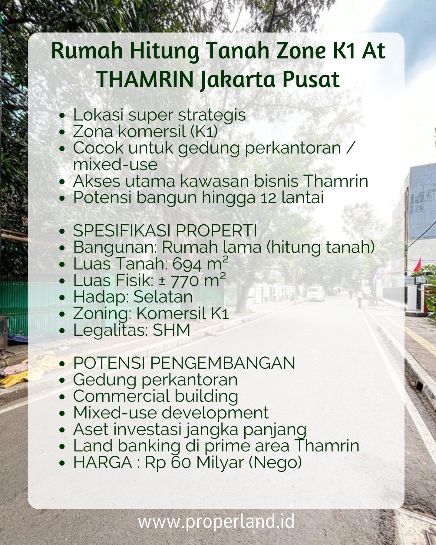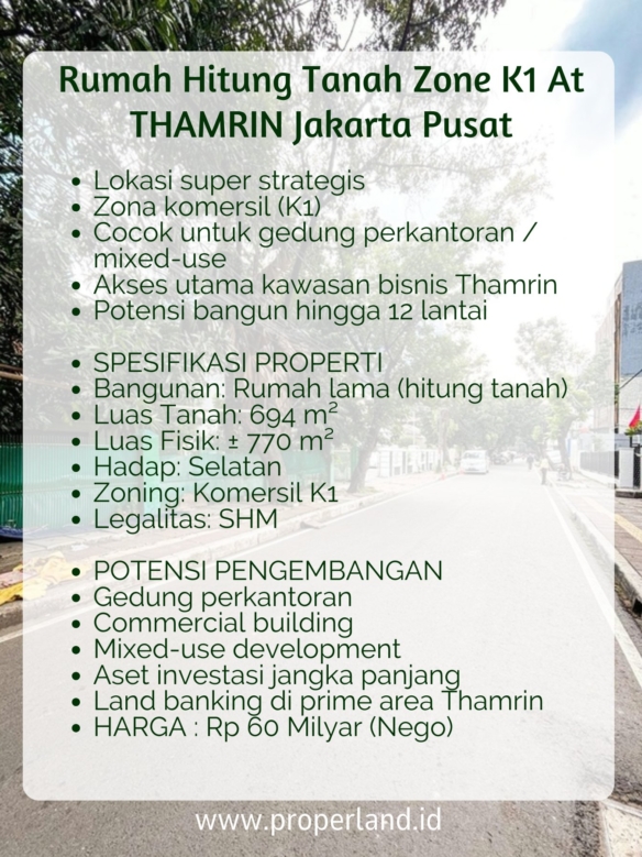 Rumah Hitung Tanah di Zona Komersil K1 Thamrin