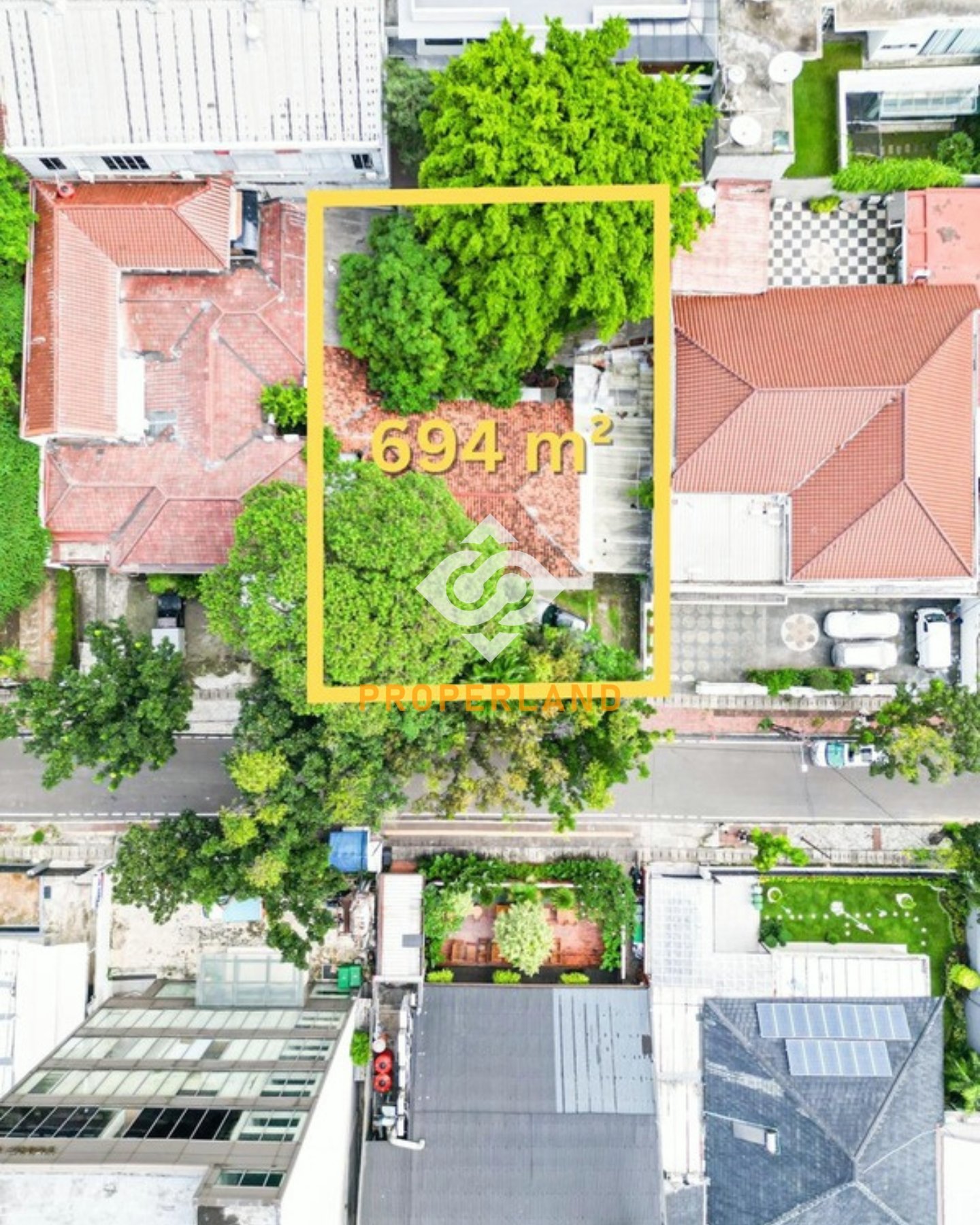 Properti ini memiliki luas tanah sekitar 694 m² dan luas fisik sekitar 770 m². Bangunan lama ini memiliki hadap selatan dan zoning komersil K1, sehingga sangat cocok untuk dikembangkan menjadi berbagai jenis properti komersil.