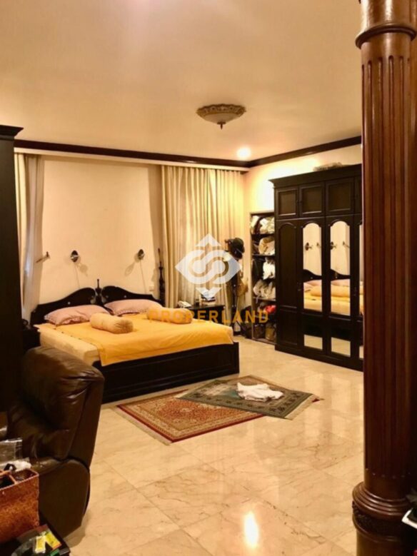 Rumah ini memiliki desain arsitek ternama Adi Prana, dengan material kusen dan pintu Jati Jepara, lantai marmer, dan semi furnished. Selain itu, rumah ini juga dilengkapi dengan taman depan, dalam, dan samping yang luas, serta garasi dan carport yang dapat menampung 2 mobil.